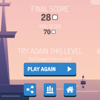 We improved the retry experience by adding a “Play Again” button. In this way, you can play again the same level with out the need to go back to the main screen.